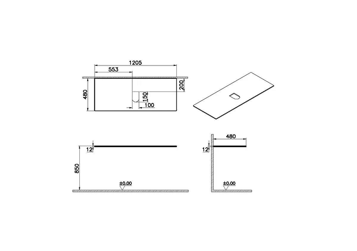 VitrA Origin 120 cm Neolith Orta Sifon Delikli Cam Üst Tezgah