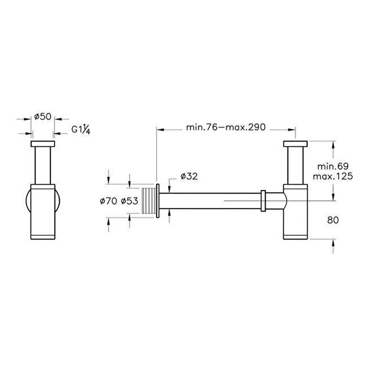 G 1 1/4" girişlidirLavabo sifon merkezi ile duvar arası min. 76 - maks. 325 mm'dir. Ölçülerin lavaboya uygunluğu kontrol edilmelidirMetal taslıdır