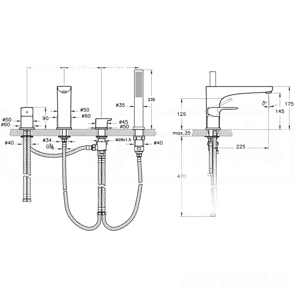 A4274374 Artema Root Round 4 Delikli Küvet Bataryası, El Duşlu,Soft Altın