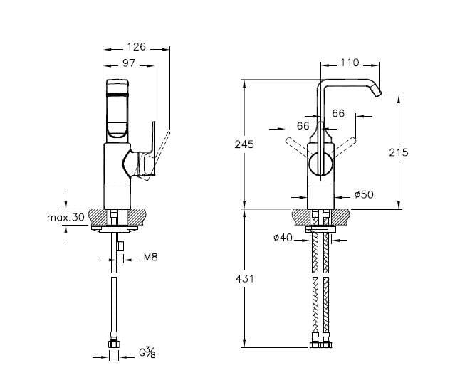 Çıkış ucu uzunluğu 110 mmdir. Çıkış ucu yüksekliği 170 mmdir.Isı ve debi limitörlü özel kartuş. Cache (gizli) perlatör.Özel debi kısıcılı perlatör sayesinde maksimum 5 Litre/dakika su akışı sağlanmaktadır.
