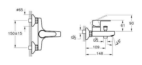 El duşu çıkışı G 1/2 bağlantı. Çıkış ucu uzunluğu 149 mm dir. Duş kumandası kilitlemelidir. Isı ve debi limitörlü özel kartuş. Metal parayla bile kolayca sökülüp takılabilen perlatör.