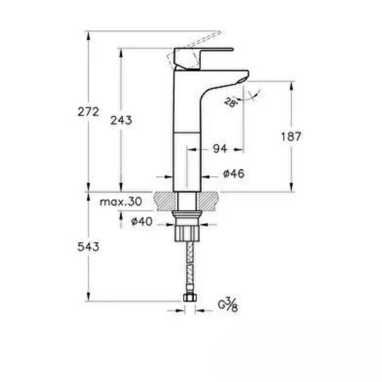 Çıkış ucu uzunluğu 94 mm dir. Çıkış ucu yüksekliği 187 mm dir. Isı ve debi limitörlü özel kartuş. Metal parayla bile kolayca sökülüp takılabilen perlatör. Özel debi kısıcılı perlatör sayesinde max. 5 L/dk su akışı sağlanmaktadır.