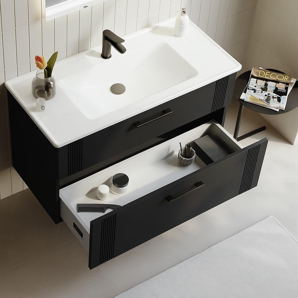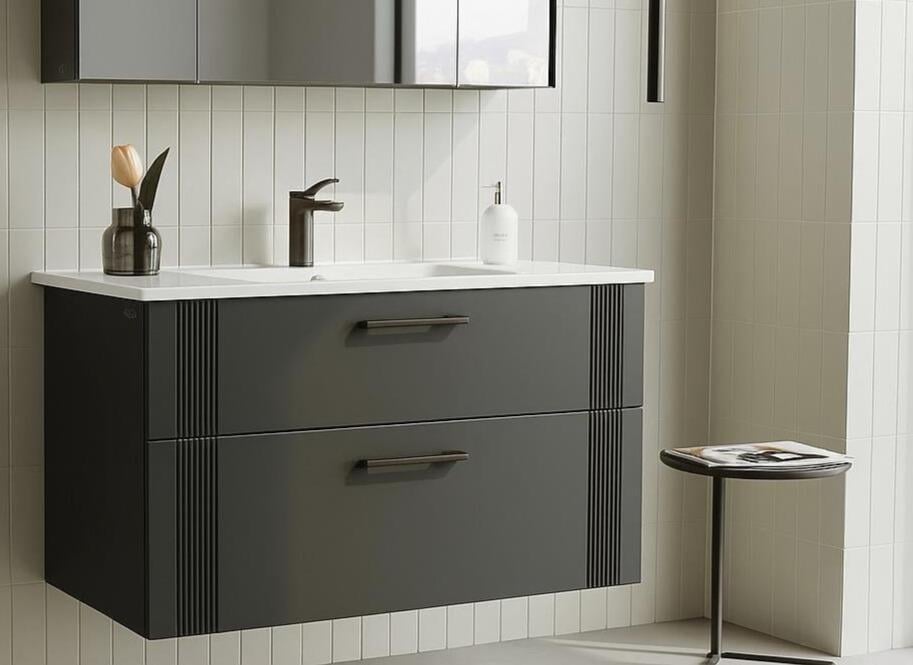 Orka Bari 100 cm Antrasit Banyo Dolabı Alt Modül ve Lavabo