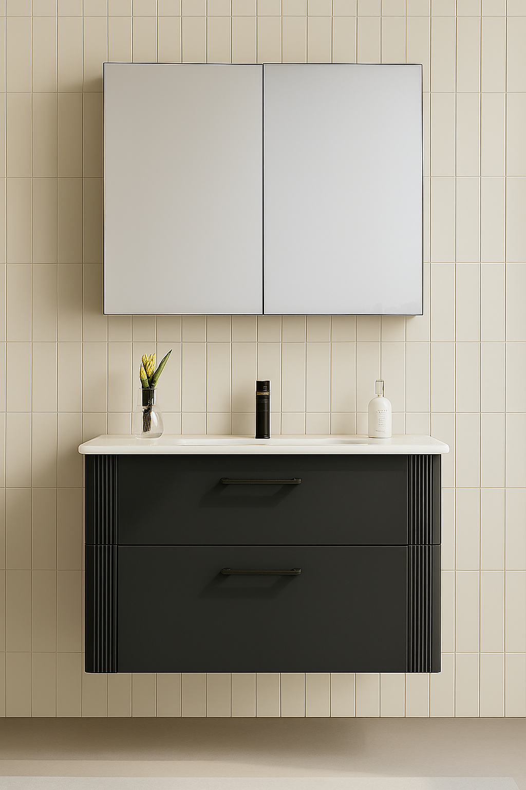Orka Bari 85 cm Mat Antrasit Banyo Dolabı Takımı (Dolaplı Ayna)