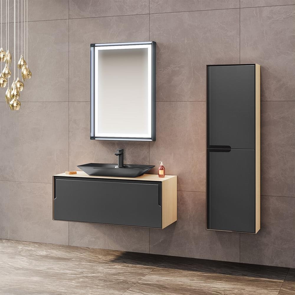 Orka Craft 100 cm Meşe Antrasit Banyo Dolabı Alt Modül ve Lavabo (Mat Antrasit Lavabo)