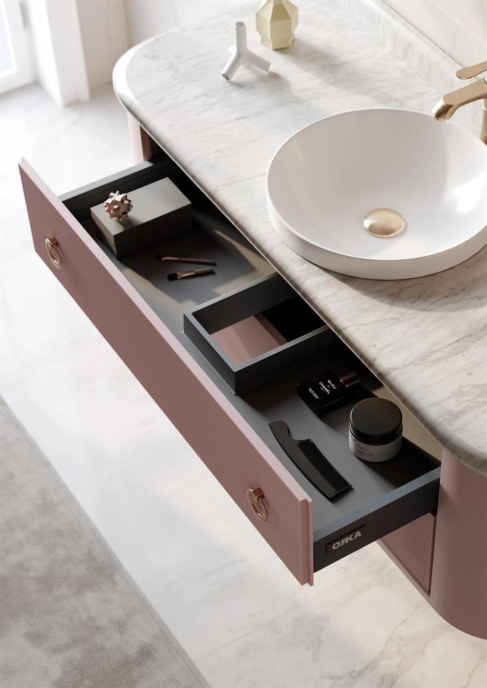 ORKA Banyo Dolabı 3006656 FELİCE 100 ALT MODÜL + LAVABO MAT PUDRA LAKE / AHŞAP AYAK ALTIN
