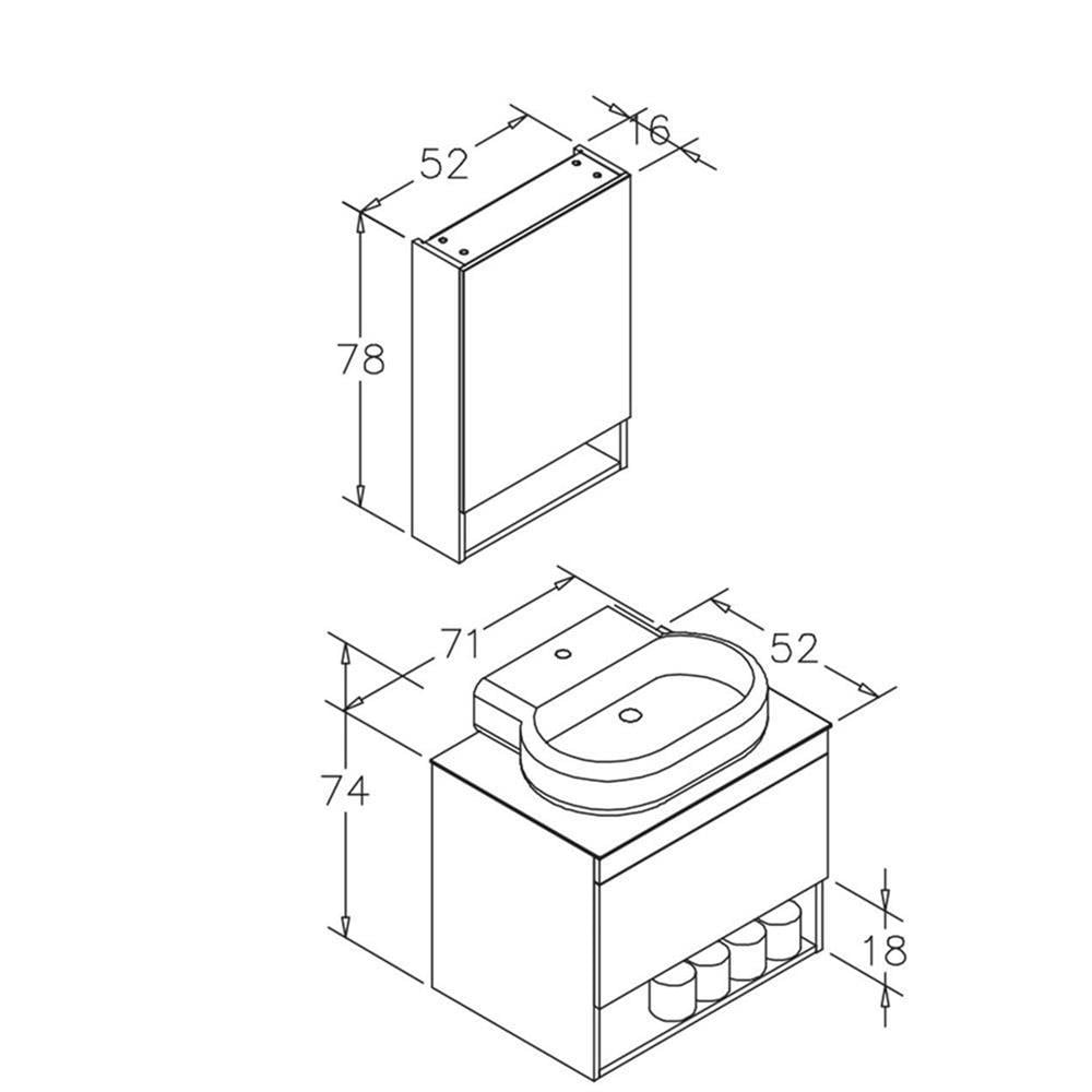 ORKA Banyo Dolabı 5000342 KNIDOS 70 TAKIM KAPAKLI AYNA PARLAK BEYAZ