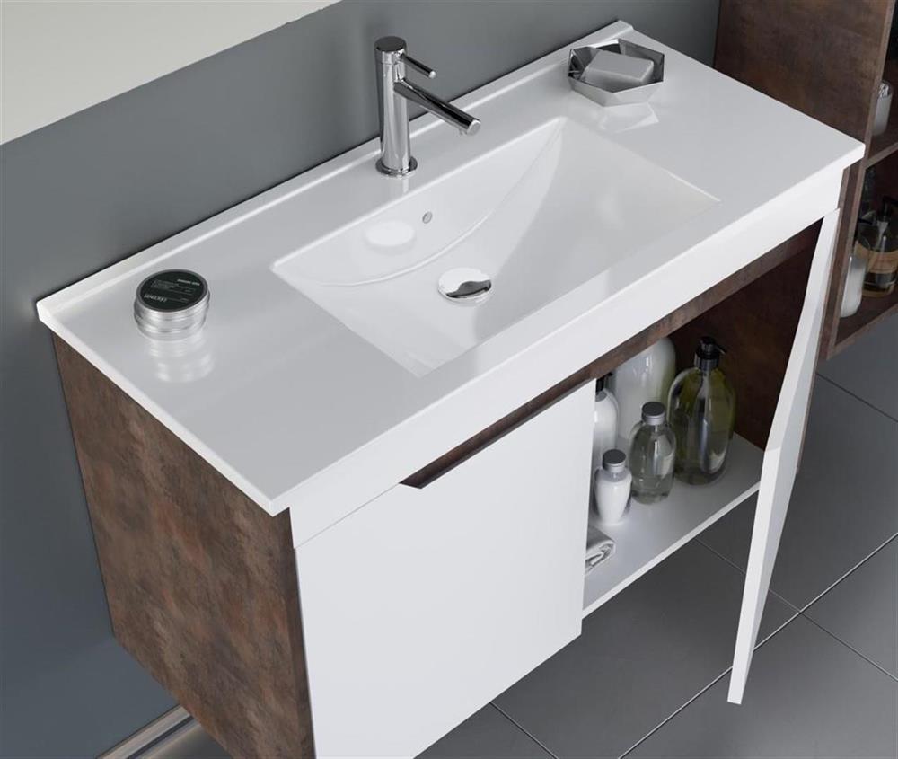 ORKA Banyo Dolabı 5001409 LAGO 85 ALT MODÜL + LAVABO KAŞMİR TAŞ/PARLAK BEYAZ