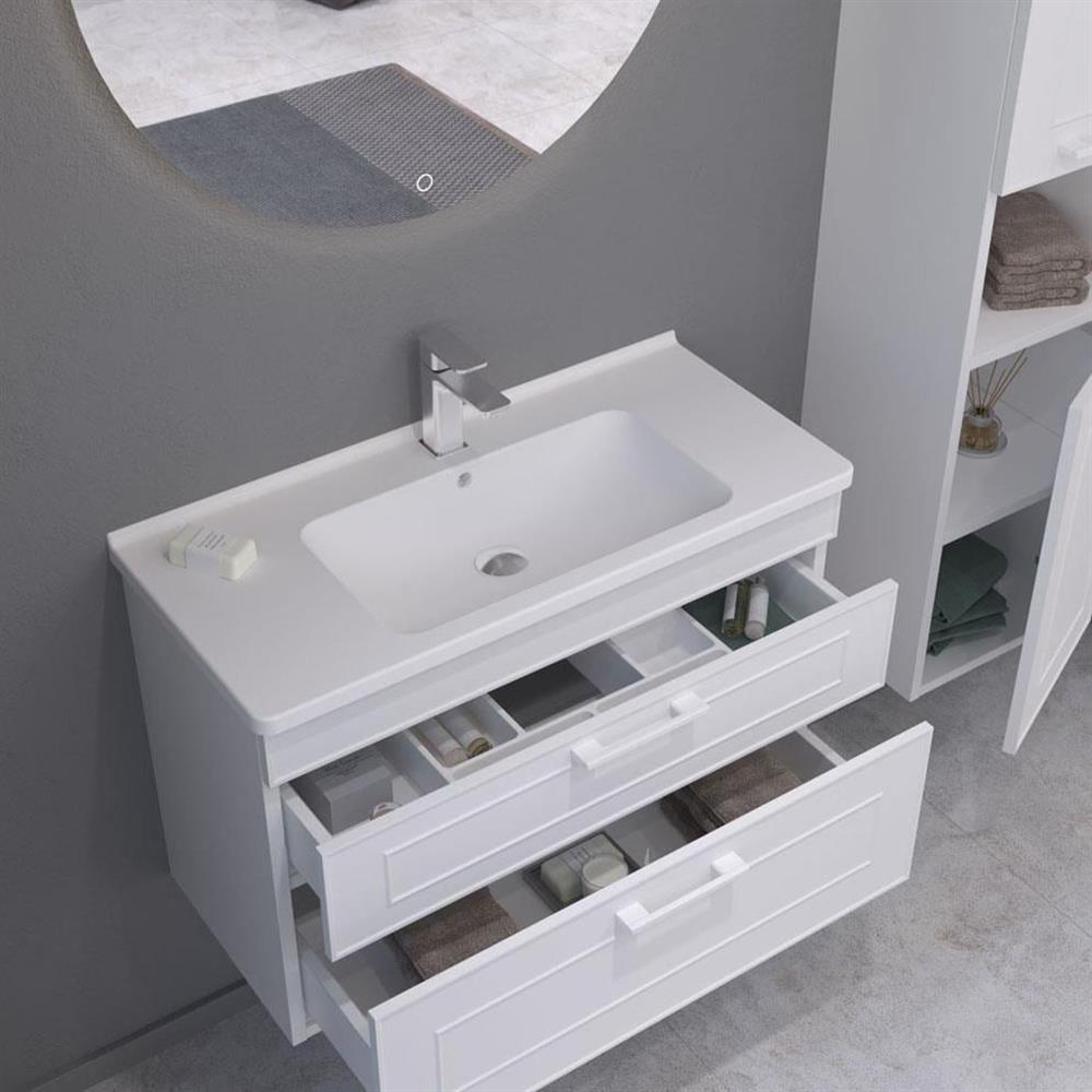 ORKA Banyo Dolabı 5003919 LİMPO 80 ÇEKMECELİ ALT MODÜL + LAVABO MAT BEYAZ