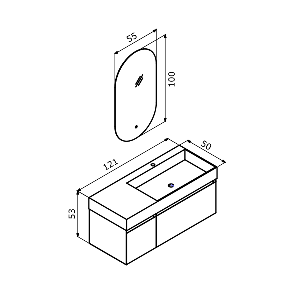 ORKA Banyo Dolabı 5003963 LUSSO 120 TAKIM MAT MAVİ (LEDLİ AYNA)