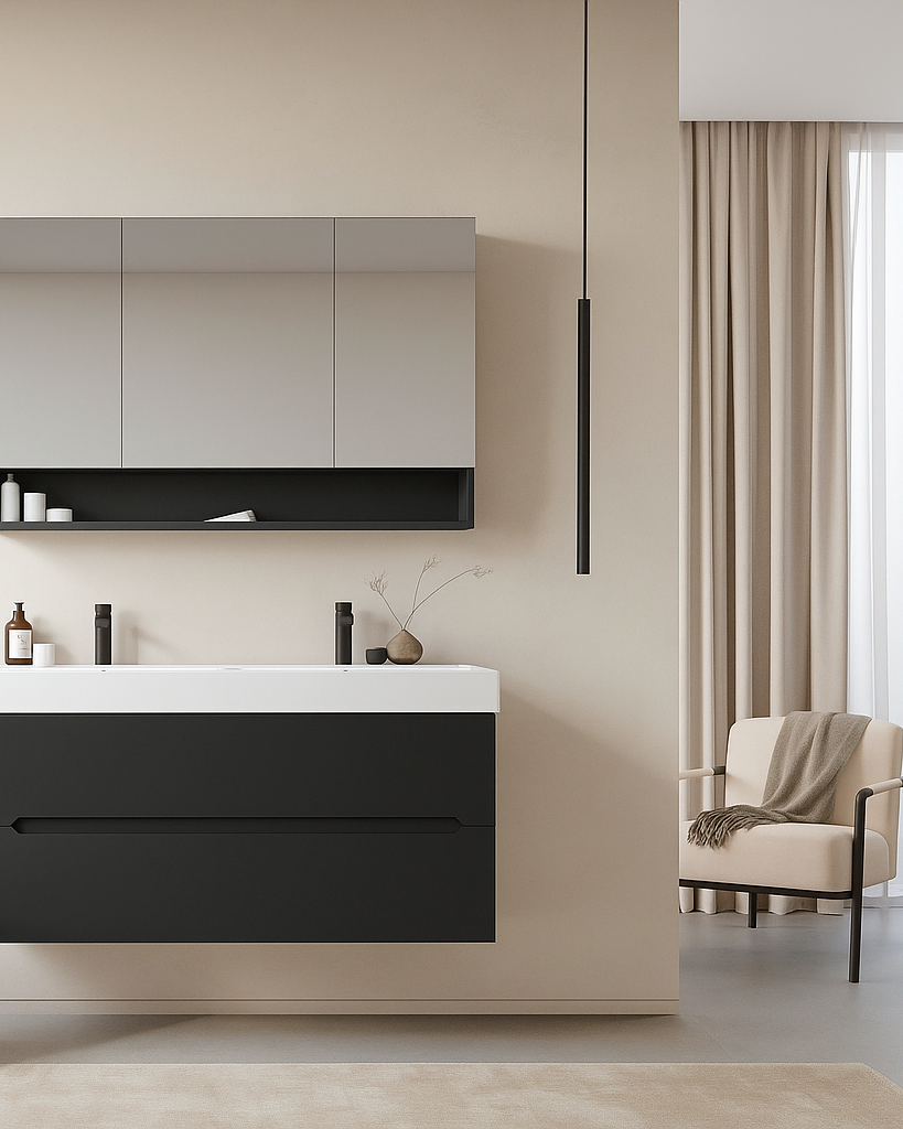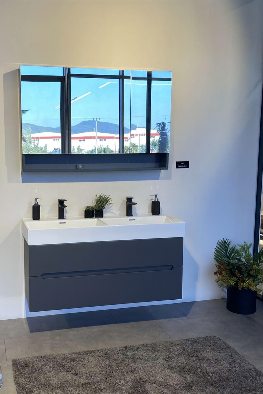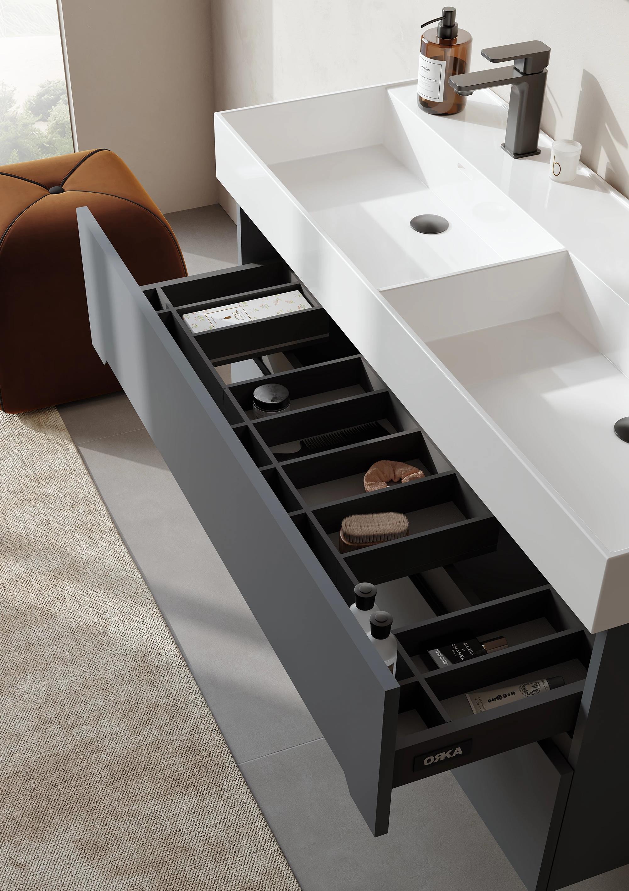 Orka Malta 120 cm Mat Antrasit Banyo Dolabı Takımı (Dolaplı Ayna)