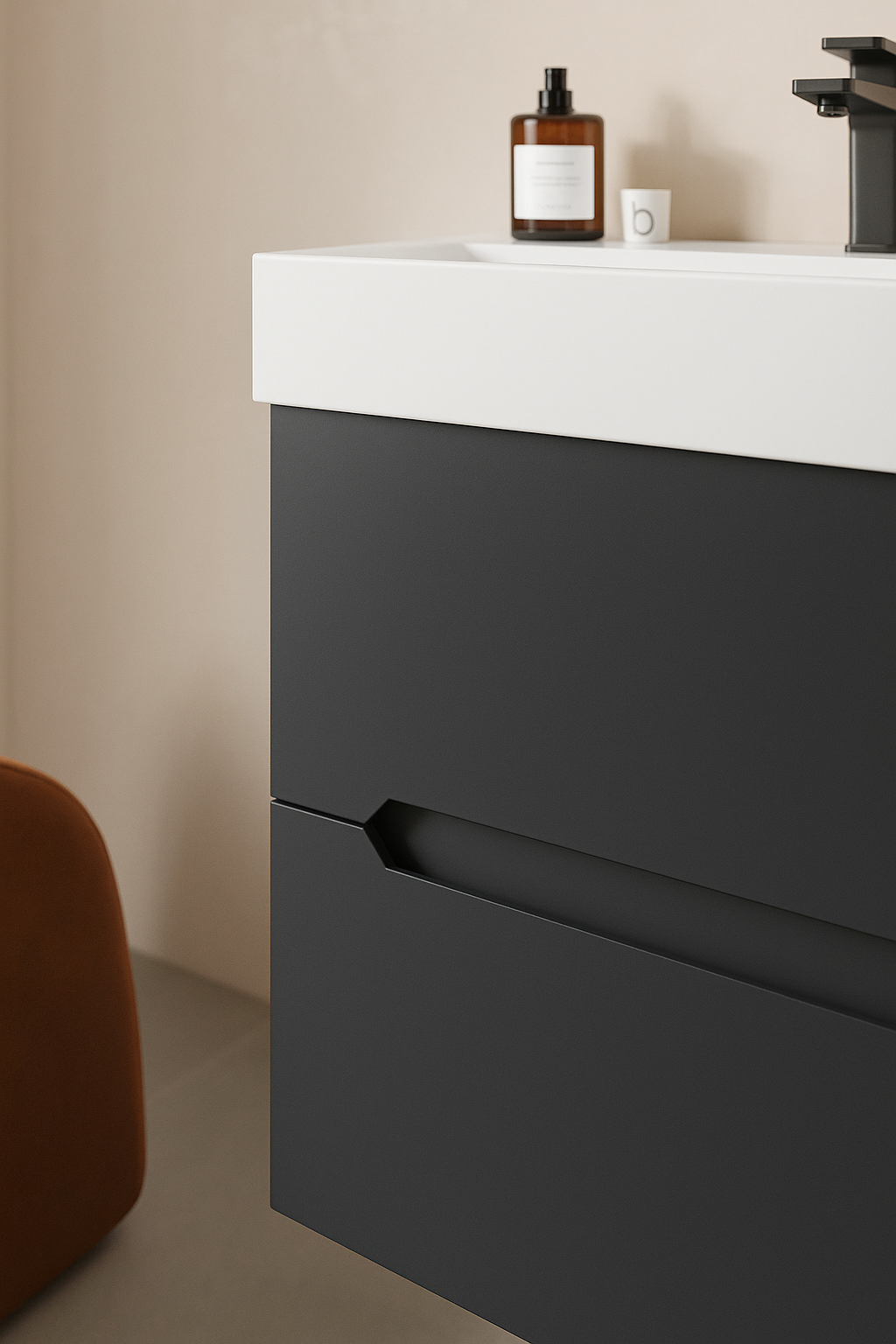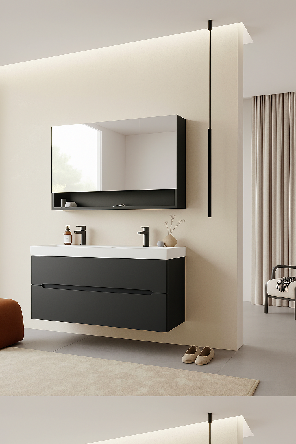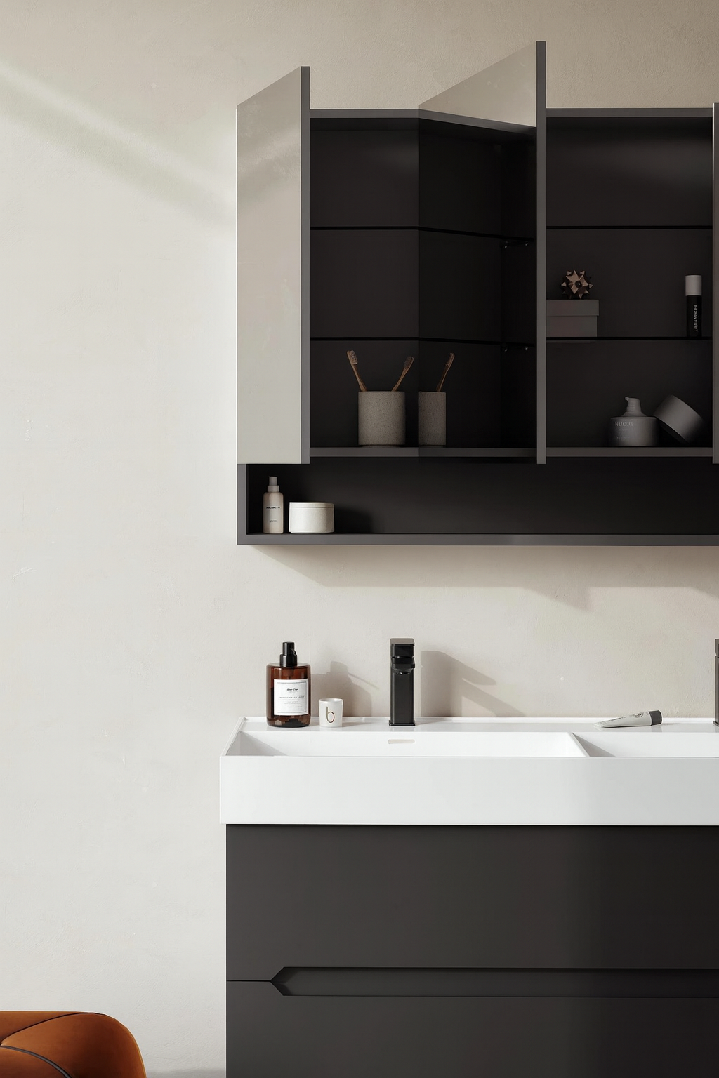 Orka Malta 120 cm Mat Antrasit Banyo Dolabı Takımı (Dolaplı Ayna)