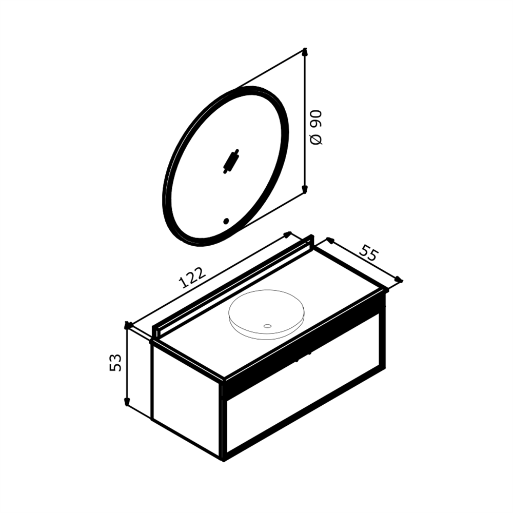 ORKA Banyo Dolabı 5004656 MOLİNO 122 TAKIM MAT ANTRASİT LAKE (LEDLİ AYNA-KROM KULP)