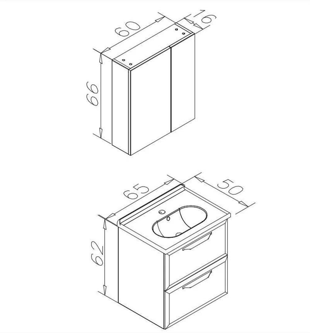ORKA Banyo Dolabı 5000589 NUVOLA 65 TAKIM PARLAK ANTRASIT