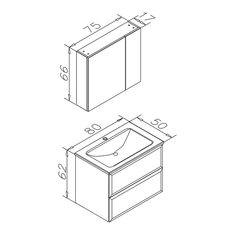 ORKA Banyo Dolabı 5004186 NUVOLA 80 TAKIM PARLAK GRI