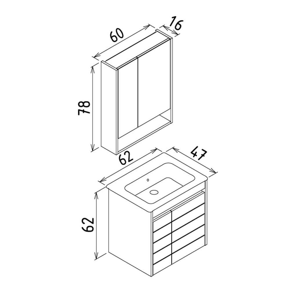 ORKA Banyo Dolabı 5002279 RICATO 60 TAKIM KİRAZ