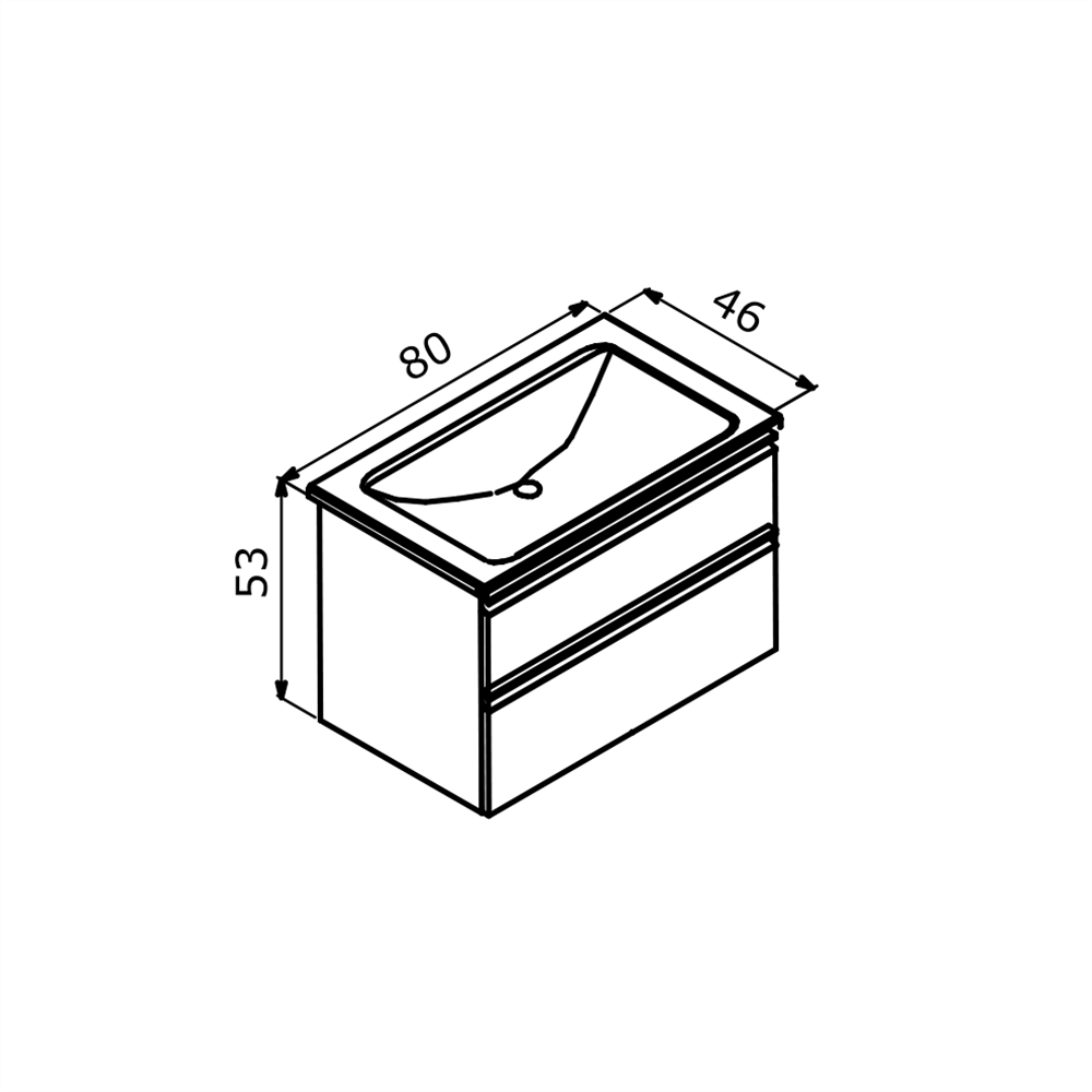 ORKA Banyo Dolabı  5003803 TERME  80 ÇEKMECELİ ALT MODÜL + LAVABO  PARLAK SIYAH