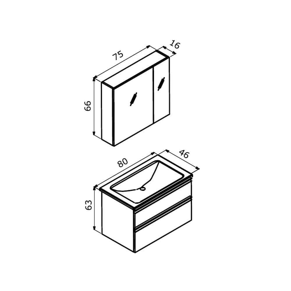 ORKA Banyo Dolabı 5003684 TERME 80 ÇEKMECELİ TAKIM PARLAK BEYAZ (DOLAPLI AYNA)