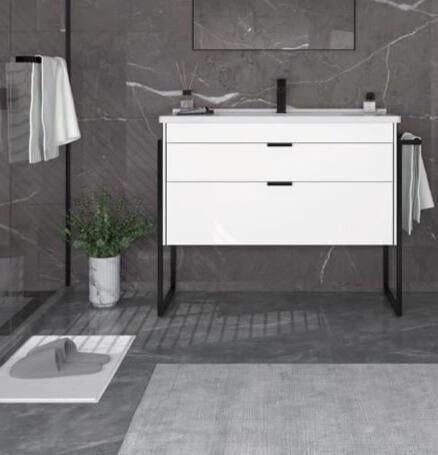 Orka Banyo Dolabı Trio 100 cm Havluluklu Beyaz Çekmeceli Banyo Dolabı Alt Modül ve Lavabo