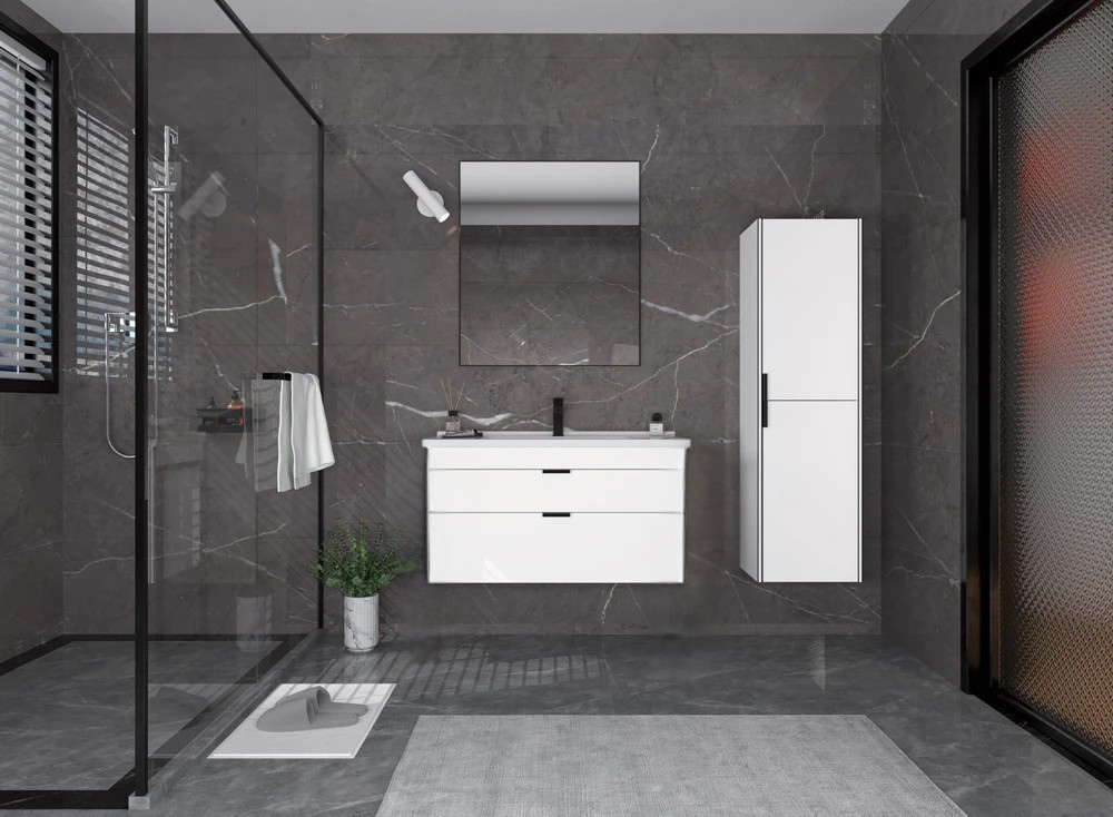 Orka Banyo Dolabı Trio 100 cm Çekmeceli Beyaz Banyo Dolabı Takımı