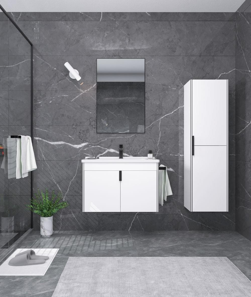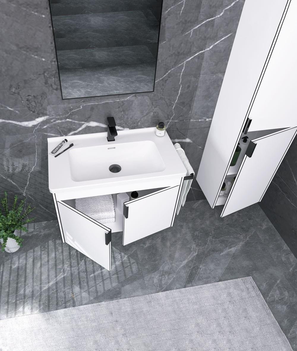 Orka Banyo Dolabı Trio 65 cm Kapaklı Beyaz Banyo Dolabı Takımı