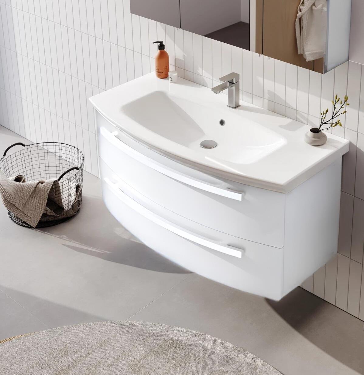 Orka Banyo Dolabı Urla 110 cm Parlak Beyaz Banyo Dolabı Alt Modül ve Lavabo