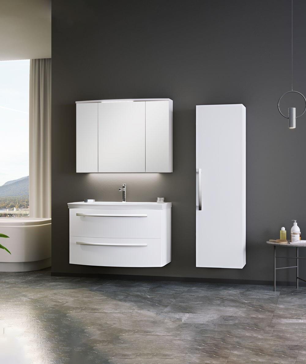 Orka Banyo Dolabı Urla 90 cm Parlak Beyaz Banyo Dolabı Takımı (Ledli-Dolaplı Ayna)
