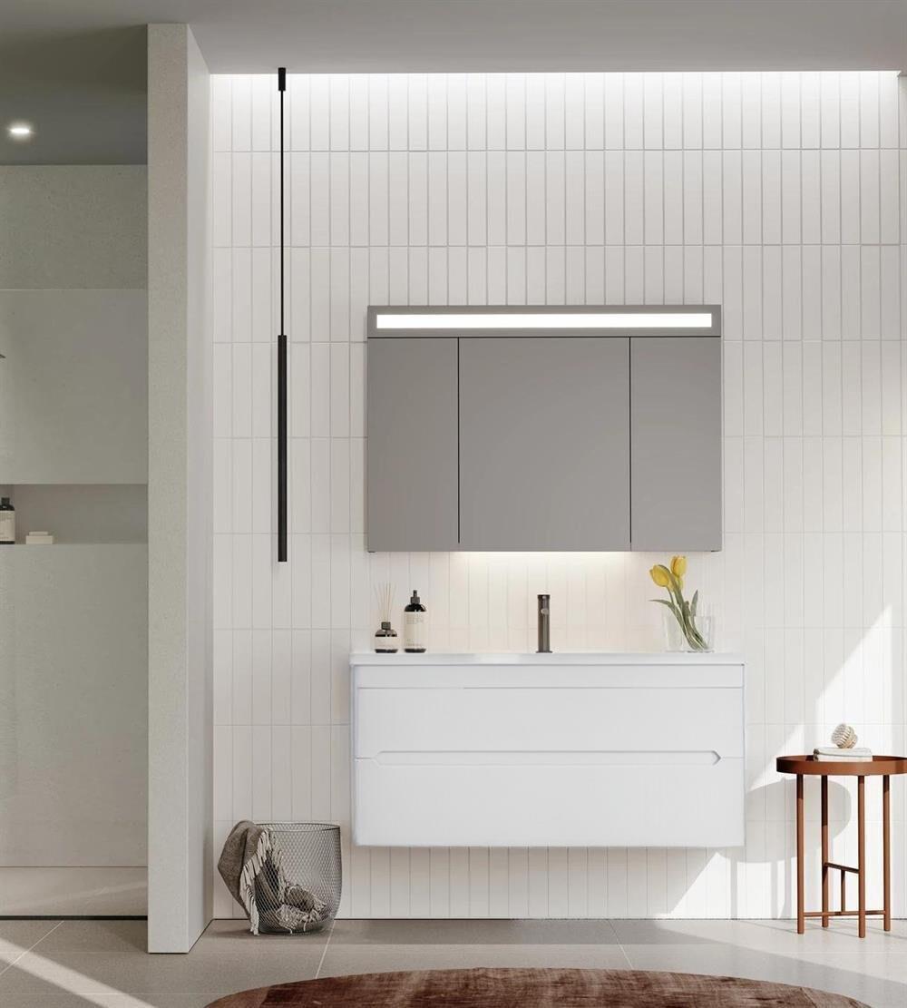 Orka Banyo Dolabı Varna 100 cm, Mat Beyaz, Banyo Dolabı Takımı (Ledli-Dolaplı Ayna)