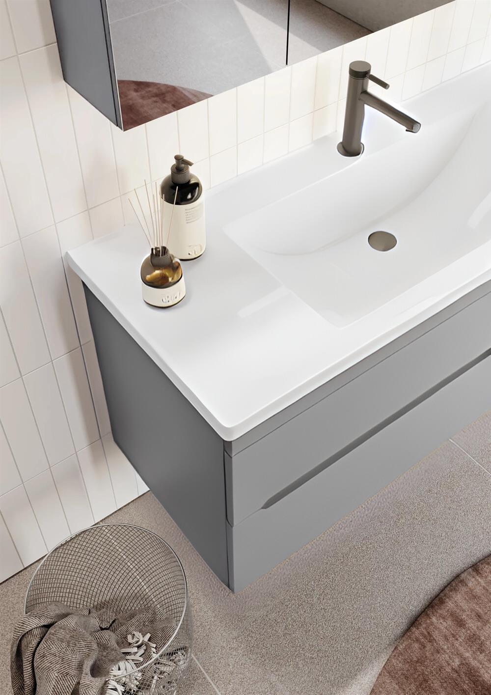 Orka Banyo Dolabı Varna 100 cm, Mat Gri, Banyo Dolabı Takımı (Ledli-Dolaplı Ayna)