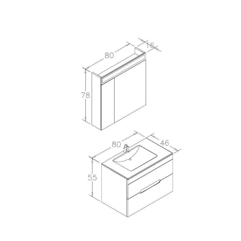 Orka Banyo Dolabı Varna 80 cm, Mat Gri, Banyo Dolabı Takımı (Ledli-Dolaplı Ayna)