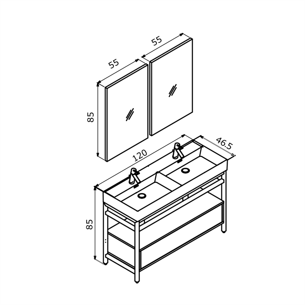 ORKA Banyo Dolabı 5003756 VEGAS 120 TAKIM BEYAZ LAVABO METALIK ANTRASİT