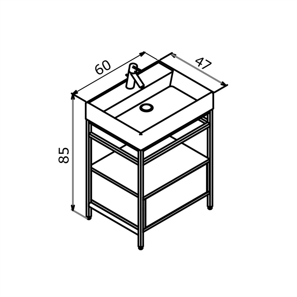 ORKA Banyo Dolabı 5003739 VEGAS 60 ALT MODÜL + LAVABO BEYAZ METALIK ANTRASİT