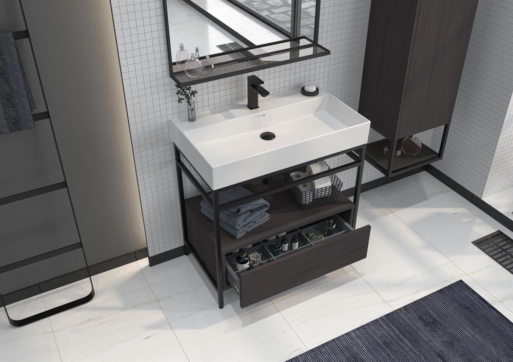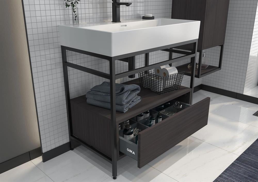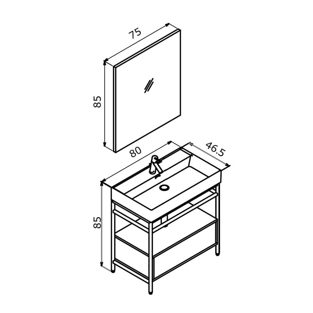 ORKA Banyo Dolabı 5003669 VEGAS 80 TAKIM BEYAZ LAVABO METALIK ANTRASİT