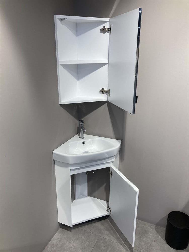 Orka Banyo Dolabı Zag 45 cm, Mat Beyaz, Banyo Dolabı Takımı, (Dolaplı-Köşe Ayna)