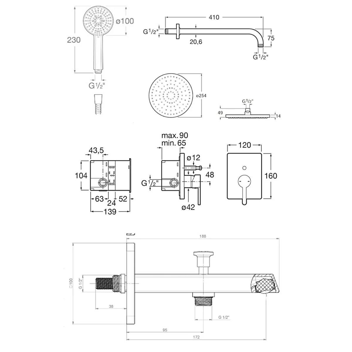 Hepsi bir arada montaja hazır ankastre banyo bataryalı duş sistemi. Ürün paketi toplam 5 parça üründen oluşmaktadır. 1) İç set dahil ankastre banyo bataryası (1.Sınıf seramik kartuş, otomatik yönlendirici). Sıva + seramik kalınlığı hesap edilerek ürün kaba inşaat aşamasında duvarda uygun bir derinliğe konumlandırılmalıdır. 2) 40 cm duvardan tepe duşu bağlantı borusu. 3) ABS 25 cm kireç kırıcılı ve kolay temizlik imkanı veren silikon su çıkış uçlu duş başlığı. 4) 3 Fonksiyonlu stella model el duş takımı. 5) Yönlendiricili su çıkış gagası. Ürün yüzeyini ve garantisini korumak için ürün temizliğinde asitli kimyasallar, aşındırıcı temizlik ürünleri ve malzemeleri kullanılmamalı, ürün yumuşak ve sabunlu bir bezle silinip durulanmalı ve üzerinde su birikintisi kalıp kireç oluşmasını engellemek için kurulanmalıdır.