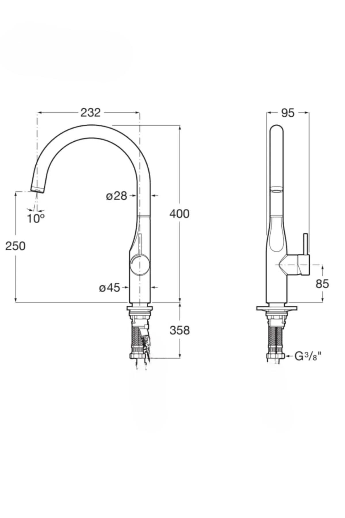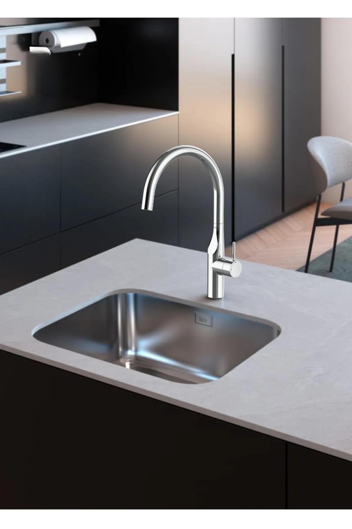 A5A844DC00 Roca Glera Döner Çıkış Uçlu Eviye Bataryası-Krom