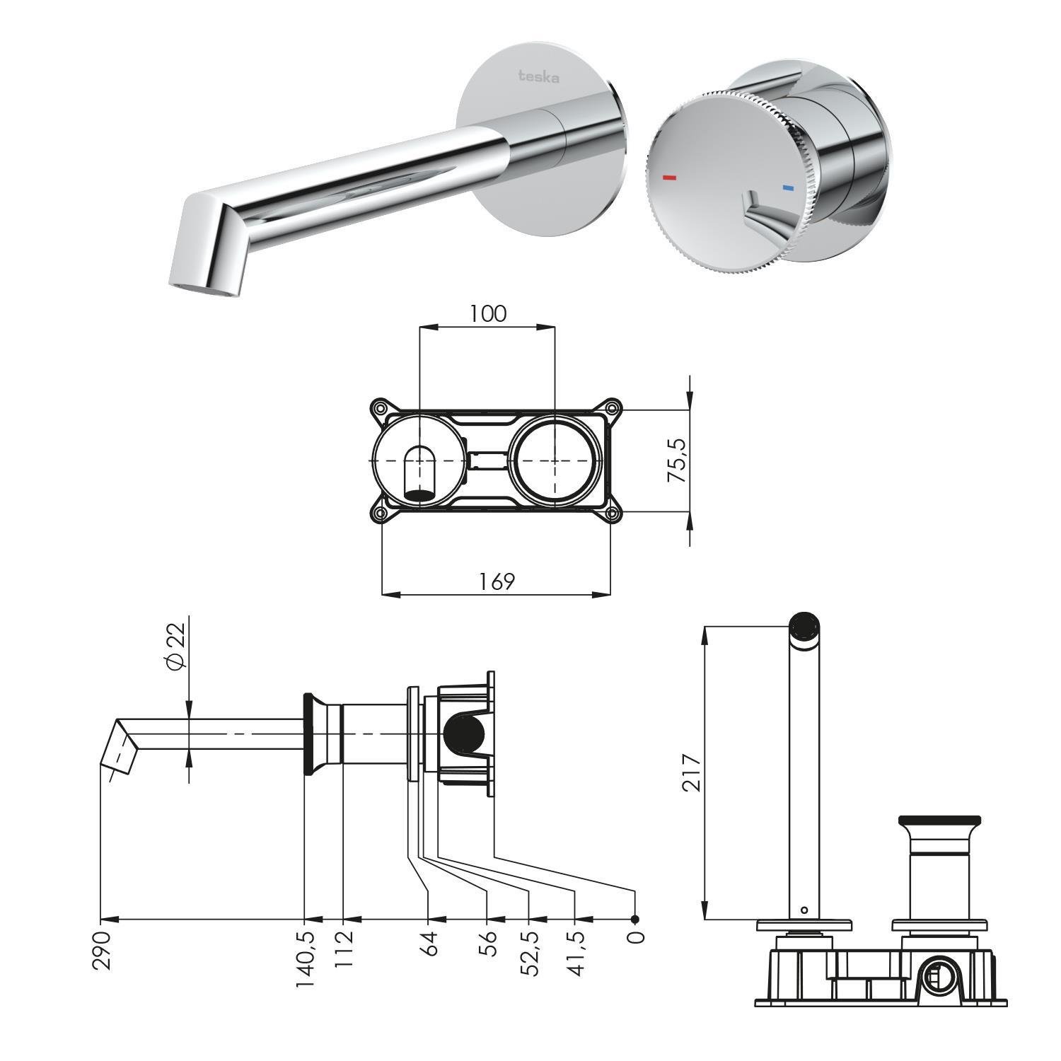 Teska Arte Ankastre Lavabo Bataryası Rose Gold E5509