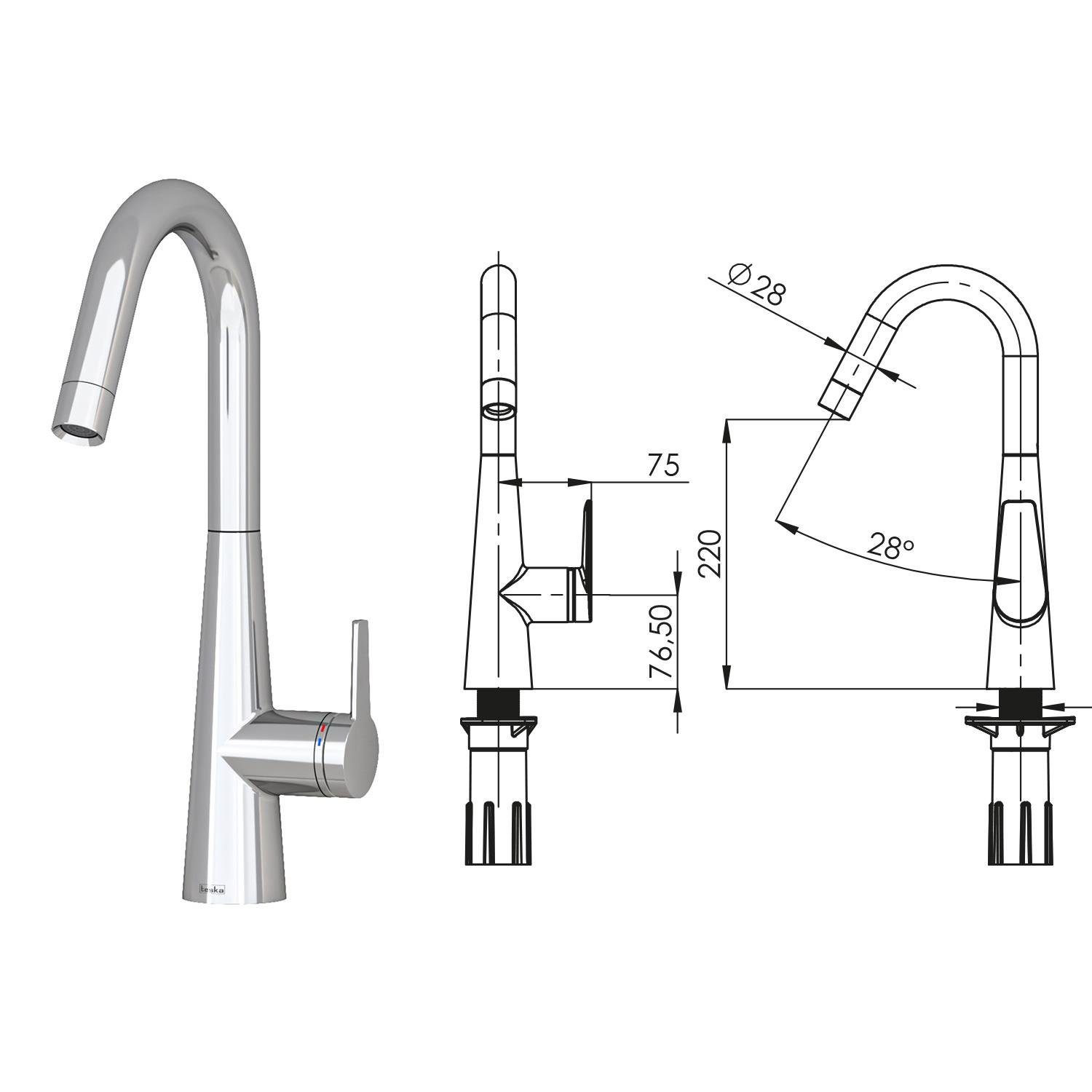 - 360° döner gaga özelliği - Gaganın açısı sayesinde büyük ebatlı tencereve tepsileri rahatlıkla yıkama olanağı - Şık ve zarif tasarım- PVD kaplama