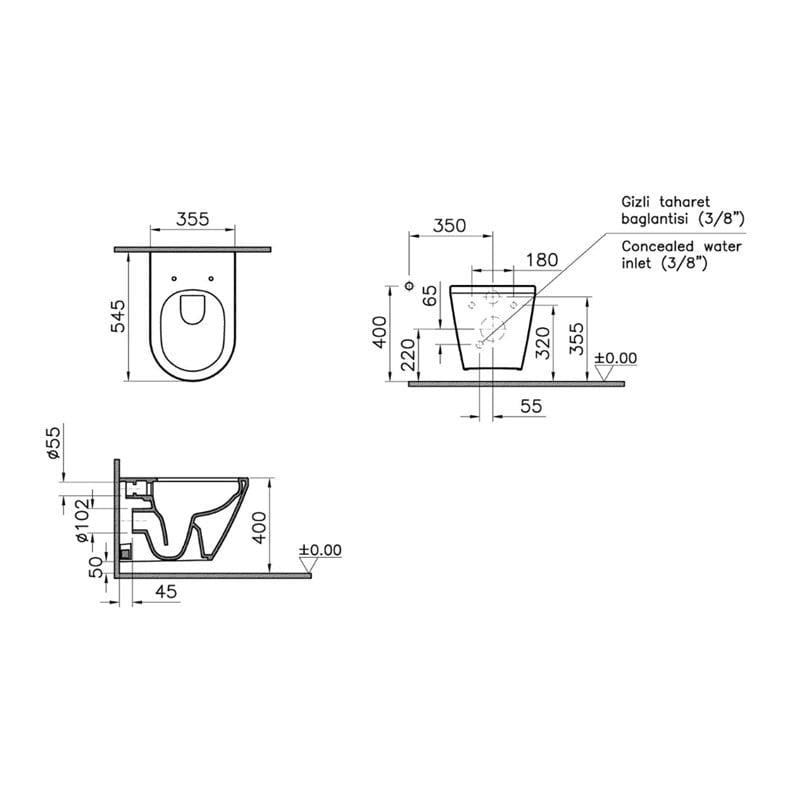 Klozet Kapağı hariçtir, ayrıca sipariş edilmelidir. 108-003-311, 108-003-001 ve 108-003-009 kodlu klozet kapakları ile uyumludur. Termostatik kartuşlu entegre ara musluklu (sıcak ve soğuk su karıştırabilme özelliği vardır).