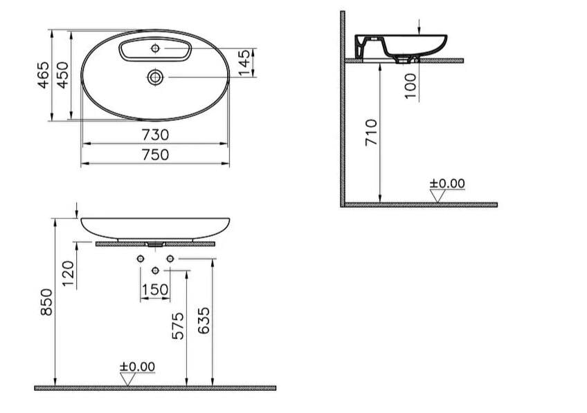 Vitra Lavabo, Memoria, Yuvarlak, Çanak Lavabo , 75 cm, Mat Siyah, 5881B483-0563