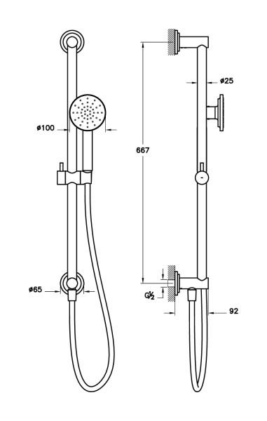 Akış fonksiyonu: Aquaspray. El duşunda yer alan özel debi regülatörü sayesinde max. 8 L/dk su akışı sağlanmaktadır. El duşundaki silikon noozle biriken kirecin ufak bir el hareketiyle kolayca temizlenmesine ve ürünün uzun ömürlü olmasına olanak veriyor. Chroma-tech spiral tek parça pürüzsüz yüzeyi sayesinde rahatlıkla temizlenebiliyor ve kullanırken dolanma yapmaz. Spiral uzunluğu 1.500 mm%u2019dir. Sürgü uzunluğu 700 mm%u2019dir. Eksen mesafesi 670 mm%u2019dir. G 1/2"