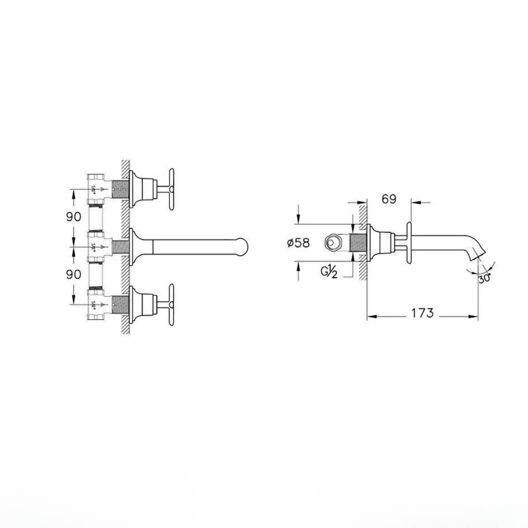 Çıkış ucu uzunluğu 173 mm’dir. Rozet çapları 58 mm’dir. Özel debi kısıcılı perlatör sayesinde max. 5 L/dk su akışı sağlanmaktadır. 90° seramik diskli açma-kapama. Sıva altı grubu ürüne dahil değildir, A40835 kodlu Artema Ankastre Lavabo Bataryası (Sıva Altı Grubu) ayrıca sipariş edilmelidir.