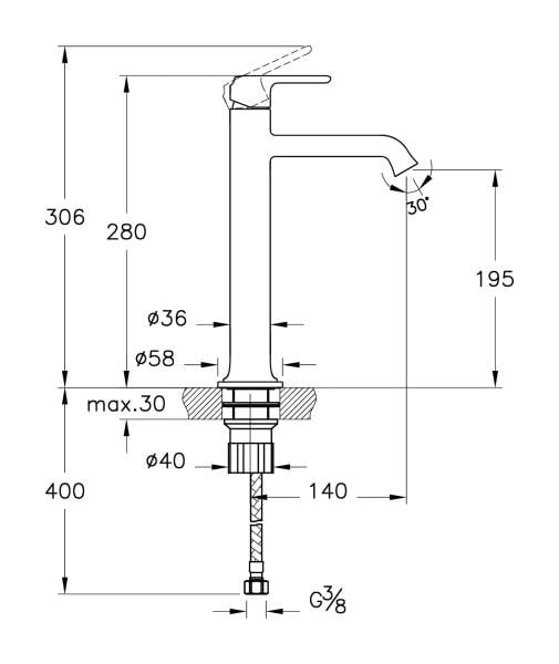 Uyarı ve Genel Açıklamalar: Çıkış ucu uzunluğu 140 mm%u2019dir. Çıkış ucu yüksekliği 195 mm%u2019dir. Sabit boruludur. Silikon Cache (gizli) perlatör. Özel debi kısıcılı perlatör sayesinde max. 5 L/dk su akışı sağlanmaktadır. Ek aparat gerektirmeyen pratik montaj. Yüksek dayanımlı 0 pirinç kartuş. Teflon kaplı seramik diskli kartuş ile uzun yıllar konforlu aç-kapa.