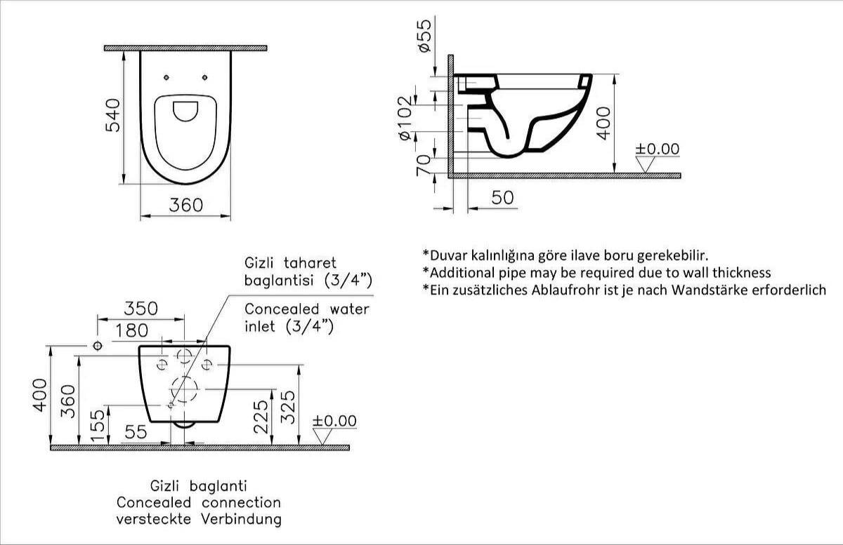 Klozet kapağı hariçtir.Ayrıca sipariş verilmelidir.0120-003-009 .Sento Slim yavaş kapanan kapak 86-003-001 ve 86-003-009 Sento klozet kapağı ile uyumludur.
