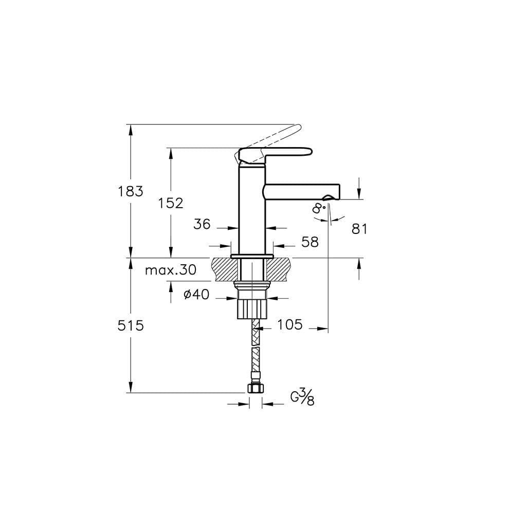 Çıkış ucu uzunluğu 105 mm dir. Çıkış ucu yüksekliği 81 mm dir. Özel debi kısıcılı perlatör sayesindemax. 5 L/dk su akışı sağlanmaktadır. Ek aparat gerektirmeyen pratik montaj.