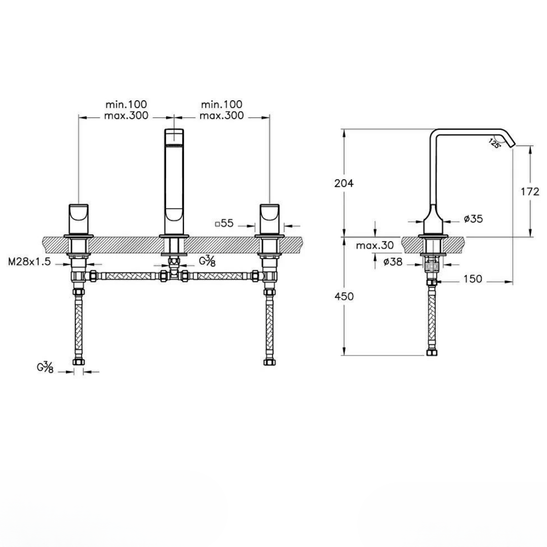 Çıkış ucu uzunluğu 150 mm%u2019dir. Çıkış ucu yüksekliği 172 mm%u2019dir. Cache (gizli) perlatör. Özel debi kısıcılı perlatör sayesinde max.5 L/dk su akışı sağlanmaktadır. 90%B0 seramik diskli açma-kapama