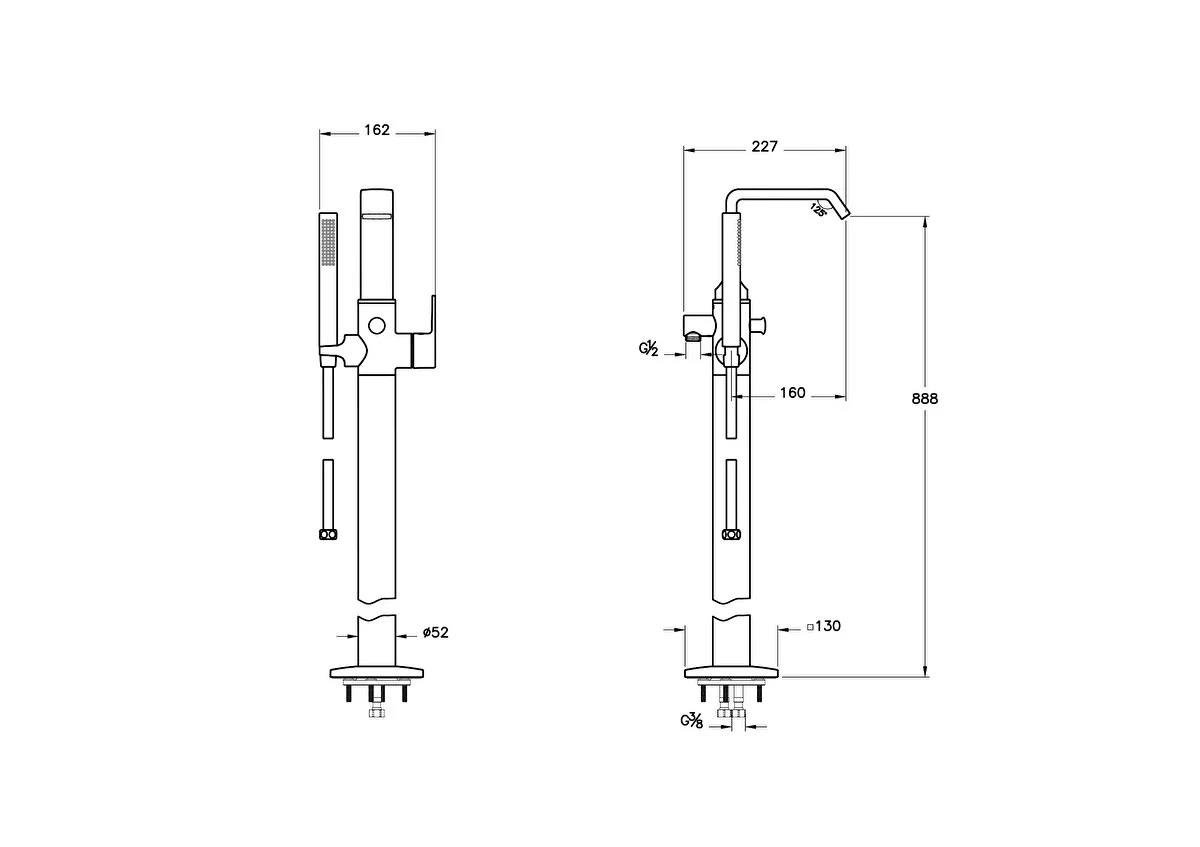 Çıkış ucu uzunluğu 168 mm%u2019dir. Yerden çıkış ucuna kadar olan yükseklik 888 mm%u2019dir. Isı ve debi limitörlü özel kartuş. 1F el duşu ürüne dahildir. Chroma-tech spiral uzunluğu 1.500 mm%u2019dir.