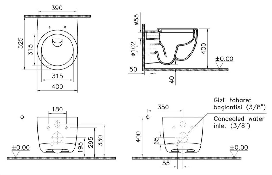Montaj Tipi : Montaj deliksiz gizli sistem